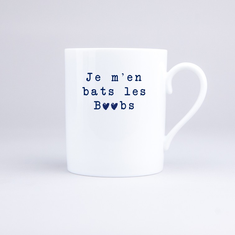 Chez Mug in France, on aime l’humour sans filtre, celui qui fait sourire dès le matin. Et avouons-le, parfois… on s’en bat les Boobs ! En effet, la vie est trop courte pour s’embêter de tout alors autant le dire avec style ! Du coup, on a imaginé le Mug Je m’en bats les Boobs comme la tasse parfaite pour afficher votre second degré, votre esprit libre et votre franc-parler. Fabriqué en France, en porcelaine, dans notre tout petit atelier près de Toulouse, en cette tasse mélange audace, élégance et savoir-faire artisanal. En fait, c’est un mug qui a du caractère, tout comme vous.